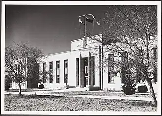 Constructed in 1939,[13][14] it was built to house the patent office following its move from Melbourne in 1934.[15] Prior to its completion, the patent office operated out of Hotel Acton.[16] Like other government buildings constructed in Canberra around that period,[17] it was designed in the Art Deco architectural style.[18]