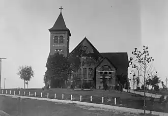 Taylor's first building project on the Tuskegee University campus was the Science Hall (Thrasher Hall) completed in 1893.[1][4] The new Science Hall was constructed entirely by students, using bricks made also by students under Taylor's supervision.[4] The project epitomized Washington's philosophy of instilling in Tuskegee students, the descendants of former enslaved Africans, the value and dignity of physical labor. It exemplified of the capabilities of African Americans in the building trades, and it underscored the larger potential of the manual training curricula being developed at Tuskegee.[4] A number of other buildings followed, including the original Tuskegee Chapel, erected between 1895 and 1898, and The Oaks, built in 1899 as Tuskegee's presidential residence.[1][4]