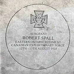 Robert Spall VC (5 March 1890 – 13 August 1918), was a Canadian recipient of the Victoria Cross, the highest and most prestigious award for gallantry in the face of the enemy that can be awarded to British and Commonwealth forces.