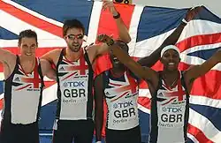 Tobin (left) with the GB 4 × 400 m team at the World Championships in 2009 | |