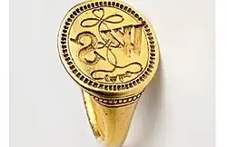 The purported Shakespeare's signet ring or seal ring, is a gold signet ring with the initials "WS". In 1810 it was found near the Holy Trinity Church, Stratford-upon-Avon, United Kingdom and may have belonged to William Shakespeare. It was donated to the Shakespeare Birthplace Trust (SBT), and is displayed at Nash's House next to New Place, Stratford-upon-Avon.