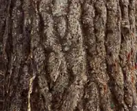 Wiens’ early work consisted of large-scale sculptures and installations, depicting fragments of heroic monuments.[6] He used sculpture and installation to explore social issues and ideas of language and representation.[7] He is perhaps best known for his large-scale watercolour close-ups of pine trees, which he began painting in 1996. The watercolours are detailed portraits of trees, including old-growth pines in Temagami, Ontario, and deciduous trees found in his local area.[8] Wiens photographs the trees and then painstakingly reproduces their texture, colour and scale. The renderings are extremely detailed and dense.[9] Wiens’ tree portraits also function as memorials to, or remnants of the destruction of Canadian forests. As John Armstong writes in C Magazine, "Wiens creates, in his pinpoint framing and cool description, a chilly distance between the living trees and what we see in the gallery: he gestures both romance and the deadpan optics of a ledger. Without any didactic tone, these paintings chronicle a simultaneously grim and poetic politic."[10]