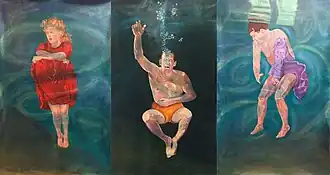 Robin Tewes (born 1950) is a Queens-born, New York City-based artist, known since the early 1980s for her representational paintings of frozen, narrative-like moments.[1][2] She has shown her work in numerous solo exhibitions in New York City, as well as nationally and internationally, and exhibited at venues including P.S. 1, the Museum of Modern Art, the Whitney Museum, The Drawing Center, and the Central Academy of Fine Arts (Beijing), among many. Her work has been widely discussed in publications including Artforum, Art in America, ARTnews, Tema Celeste,[3] the New York Times,[4] the Los Angeles Times,[5] and the Village Voice. Tewes was a founding member of the P.S. 122 Painting Association. She has been recognized with a Pollock-Krasner Foundation Fellowship (2015) and Painting Award (2008),[6] an Adolph and Esther Gottlieb Foundation Award (2007), and inclusion in the Smithsonian Archives of American Art in 2016.[7]
