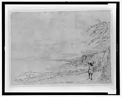 Ink drawing by William Berryman titled "On the Rockfort Road" from 1808