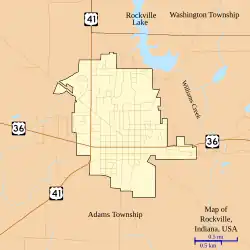 Rockville is located at the intersection of U.S. Route 36 and U.S. Route 41, about 30 miles (48 km) southwest of Crawfordsville.