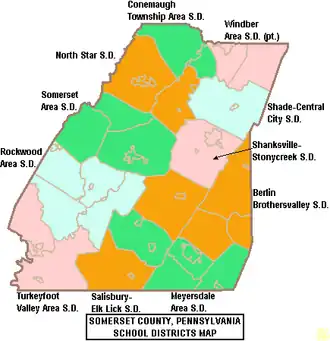 The Rockwood Area School District is a public school district located in Somerset County, Pennsylvania. It serves the boroughs of Rockwood, New Centerville, Casselman, and Seven Springs, plus the townships of Milford Township, Black Township, Upper Turkeyfoot Township, and Middlecreek Township in Somerset County, Pennsylvania. The district encompasses approximately 146 sq mi (380 km2). According to 2007 local census data, it serves a resident population of 5,680.
