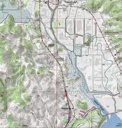 Rodman Slough is at an elevation of 1,325 feet (404 m) in Lake County, California. It flows south for 2.5 miles (4.0 km) into Clear Lake.[1] The Scotts Creek and Middle Creek watersheds feed the slough. They supply about 70% of the sediment and nutrients delivered to Clear Lake, which cause the algae population to increase in the lake.[2] During periods of heavy runoff, the two creeks raise the level of the slough and the water moves at significant speed.[3] Fine sediments are carried into Clear Lake, while coarse sediments are gradually filling in the slough.[4] The high flows also erode the levees that protect adjacent reclaimed farmland.[5]