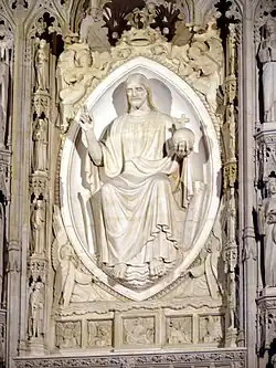 Sculptor Walker Hancock modeled the altarpiece for the Good Shepherd Chapel in 1957, and Morigi carved it in limestone.[16] Hancock would later model the central figure of Christ in Majesty for the High Altar, which Morigi carved in limestone (with Frank Zic).[17]