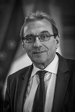 Ries has furthermore been a Member of the Senate of France for the Bas-Rhin department between September and November 2004 and is again a Member since February 2005.[5] Since 24 September 2008, Roland Ries is the president of the Association TGV Est-Européen.[6] and was elected a member of the board of directors of the SNCF for a period of five years starting on 8 March 2013.[7] Additionally, he served as the chairman of the Groupement des autorités responsables de transport (GART) from September 2008 until September 2014[8] and was elected president of the network of French cities Cités unies France in July 2014, for a duration of two years.[9]