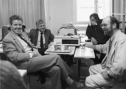 ![]() Rolf Frick (to the left) during a visit to Finland. | |