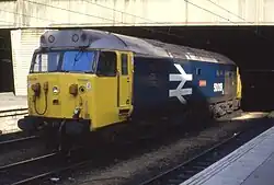'Ramillies' BR Co-Co Class 50 British Rail Large logo Blue Undergoing overhaul The class were built for working passenger services on the West Coast Main Line (WCML) north of Crewe, to Preston, Lancaster, Carlisle and Glasgow Central, with the locomotive being originally allocated the running number D419. The locomotive was named after HMS Ramillies on 18 April 1978. In 1984 Ramillies was repainted in a variation of BR Blue by staff at Plymouth Laira depot. 50019 had visited East Anglia prior to preservation, being stabled at March depot in January 1987.[17] Withdrawn for overhaul in 2013.[18]