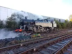 Until 2019 there were no steam locomotives based on the line, with the Mid-Norfolk hiring steam locomotives based on other railways for use during the Summer season and most remaining services utilising diesel traction. Sentinel 4wVBT 9596 "George"[9][10] and Robert Stephenson & Hawthorns 0-4-0ST 7818 "Castle Donington Power Station No. 2"[11] are stored in the former yard at Yaxham, independently of the MNR. Great Western Railway 0-6-0 PT '9466' was a regular visitor to the line, but wasn't based at Dereham.