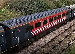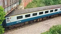 Unique catering vehicle built by Chas Roberts on the underframe of Mk 1 RK 80020. Used on one of the Cambridge Buffet Car express sets. Under restoration, private owner[44]