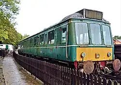 - BR Class 100 56301 BR Green On Display Built in 1957. Used for static display – although proposed for eventual restoration. Trailer car 56301 was the first diesel multiple unit car to enter preservation in 1969, originally being used at the Chasewater Railway, before spending time at the Uranium Fuel Center, Salwick, and then having a period of storage at the King's Lynn Sugar Factory (between 1996 and 1997, while associated with the aborted National Diesel Railcar Museum project).[19][20]