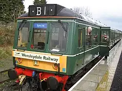 101 663 BR Class 101 56347 BR green Stored Unpowered trailer car, previously used at Bressingham, before being sold to the Foxfield. Privately owned, and now used as an additional vehicle and spare trailer for the MNR DMUs.[27][28]