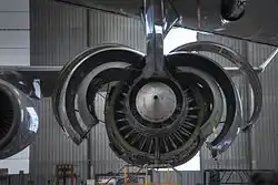 | A Trent 1000 turbofan engine installed on a test bench at the Rolls-Royce Test Facility in Derby, UK. | |