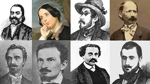 In May 1858, Românul published Sciarlatanul ("The Charlatan"), a story by the Wallachian novelist Alexandru Pelimon.[45] Also in correspondence with the newspaper, the Aromanian Romantic poet Dimitrie Bolintineanu introduced the work of his disciple, Mihail Zamphirescu (August 1858), and complained about the disenfranchisement of Aromanian immigrants to Romania (March 1861).[46] Românul played host to the Albano-Romanian aristocrat Dora d'Istria, being one of the first local periodicals to acknowledge her literary work (her text, L'Italia s'è fatta!, was published by Rosetti in December 1860).[47]