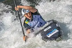 Romane Prigent (born 1 April 1999) is a French slalom canoeist who has competed at the international level since 2016.[6] She is from Pau in the Pyrénées-Atlantiques department of France and competes for Pau Canoe-kayak Club Universitaire.[2][3]