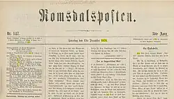 - ^ a b Forr, Gudleiv (2010). "Romsdalsposten". In Flo, Idar (ed.). Norske aviser fra A til Å. Volume four of Norsk presses historie 1660–2010 (in Norwegian). Oslo: Universitetsforlaget. p. 282. ISBN 978-82-15-01604-7.