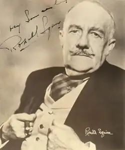 Born in Tiverton, Devon, England, the son of an army officer, Lt.-Col. Frederick Squirl and his Irish-born wife Mary (Ronald's surname 'Squire' was his stage name), he attended Wellington College and started professional life as a journalist, before training at RADA.[2][3] He spent his early acting career in Liverpool repertory theatre in light comedy roles, before moving on to films.[3] His appearances include The Rocking Horse Winner, The Million Pound Note and Mike Todd's lavish 1956 version of Around the World in 80 Days.[4] He died 16 November 1958 aged 72, after being taken ill at his home in Great Ormond Street, London.[2]