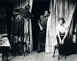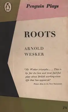 Roots (1958) is the second play by Arnold Wesker in The Wesker Trilogy.[1] The first part is Chicken Soup with Barley and the final play is I'm Talking about Jerusalem.[2] Roots focuses on Beatie Bryant as she makes the transition from being an uneducated working-class woman obsessed with Ronnie, her unseen liberal boyfriend, to a woman who can express herself and the struggles of her time. It is written in the Norfolk dialect of the people on which it focuses, and is considered to be one of Wesker's kitchen sink dramas. Roots was first presented at the Belgrade Theatre, Coventry, in May 1959 with Joan Plowright in the lead[3] before transferring to the Royal Court Theatre, London.[4]