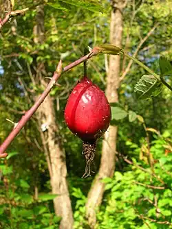 Rosa macrophylla, the big-hip rose, is a species of flowering plant in the family Rosaceae, native to the Himalayan region.[1][2][3] There are a number of cultivars, including 'Doncasteri', 'Glaucescens', 'Master Hugh', and 'Rubricaulis'.[4][5][6][7] 'Master Hugh' has the largest hips of any readily available rose.[8]