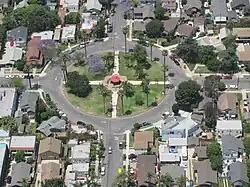 The Rose Park Historic District gains its name from the small circular park on Orizaba Avenue at the intersection of 8th Street. The park was donated to the city in 1910 by the Alamitos Land Company.