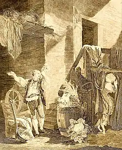 Rose et Colas is a French opéra-comique in 3 acts by Michel-Jean Sedaine,[1] music by Pierre-Alexandre Monsigny, first performed on the Théâtre-Français at the Hôtel de Bourgogne on 8 March 1764.[2][3][4][5] Rose et Colas is mentioned by Honoré de Balzac in the short story Une double famille (1830). The Lord of Granville is a strong spirit, who hums an aria in Bayeux Cathedral: "Notwithstanding the sanctity of the place, he hummed, while taking holy water, an aria from the opera of Rose and Colas, and guided his son along the side galleries of the nave..."