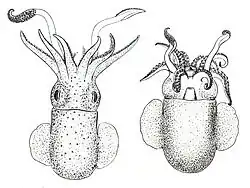 - ^ Reid, A. & P. Jereb 2005. Family Sepiolidae. In: P. Jereb & C.F.E. Roper, eds. Cephalopods of the world. An annotated and illustrated catalogue of species known to date. Volume 1. Chambered nautiluses and sepioids (Nautilidae, Sepiidae, Sepiolidae, Sepiadariidae, Idiosepiidae and Spirulidae). FAO Species Catalogue for Fishery Purposes. No. 4, Vol. 1. Rome, FAO. pp. 153–203.