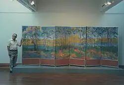 Until the mid-1950s, Weidner was content to paint in the style of his early teachers at the Academy that included Henry McCarter, George Matthews Harding, Daniel Garber, Francis Wayland Speight, and Joseph Pearson Jr.[3][7] He described himself as a Jack-of-all Trades since he was proficient in landscape, portrait, figure and still life painting. Influences of post-impressionist painting at the Barnes Foundation and of Japanese art permeated his work.[2] Despite the popularity of subsequent trends, such as the use of color in ‘Op Art”, the hard edges of ‘Pop Art’ and the simplicity of ‘minimalism', Weidner continued to paint nature in a realistic style. His work became more ambitious in scale and incorporated the Oriental concept of space while retaining Western form of modeling, light and perspective. He also returned to drawing – large, powerful but delicately executed charcoals.[2]