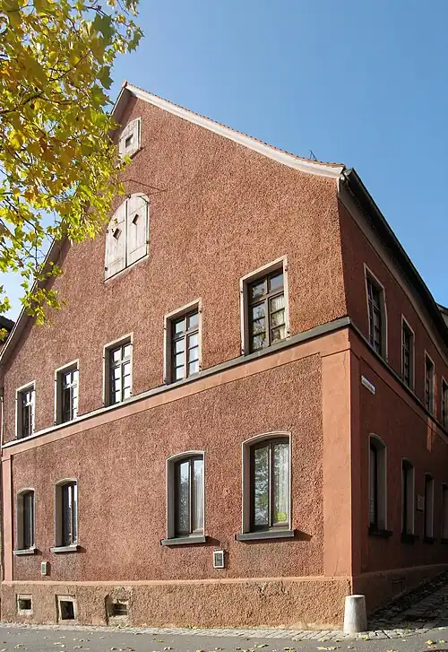In 1813 Jews in Rottweil asked Frederick I of Württemberg for the profaned church of St John the Baptist in order to establish a synagogue there. The church was part of the former Kommende of Knights Hospitaller.[5] In 1861, the Synagogenbauverein acquired the building from the former mayor Dr. Rapp[6] and furnished it with a prayer room the same year. In 1865, the Jewish commune in Rottweil bought the building. A description is given by Dr. Michael Silberstein in 1875. It was completely renovated in the 1920s. During Kristallnacht in 1938, the prayer room was demolished by members of the SA. They also burned the Torah on the street. Memorial plaques with the names of Jewish soldiers in World War I were destroyed.