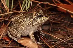 The rough frog (Ranoidea verrucosa), also known as the woodland water-holding frog, warty water-holding frog, and red-backed cyclorana, is a species of treefrog native to northern New South Wales and south-eastern Queensland, Australia.[3][4][5][6][7]