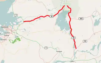 Þingvallavegur (Icelandic pronunciation: [ˈθiŋkˌvatlaˌvɛːɣʏr̥], lit. 'Þingvellir Road') or Route 36 is a primary road in southern Iceland. The road forms the main route from Reykjavík to Þingvellir and forms part of the Golden Circle around Þingvallavatn. The road is 68 km long.
