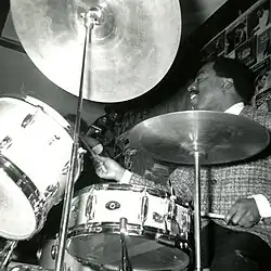 Haynes made his professional debut in 1942 in Boston and began his full-time professional career in 1945.[6] From 1947 to 1949 he worked with saxophonist Lester Young,[4] and from 1949 to 1952 was a member of saxophonist Charlie Parker's quintet.[4] He also recorded at the time with pianist Bud Powell and saxophonists Wardell Gray and Stan Getz.[4] From 1953 to 1958, he toured with singer Sarah Vaughan and recorded with her.[7][8] In the 1950s he was given the nickname "Snap Crackle".[9] In the 1960s, he was a member of the John Coltrane Quartet, often working as a sub for drummer Elvin Jones. In 1990, he co-led the album Question and Answer with Pat Metheny.[10] Haynes led bands including the Hip Ensemble.[11]