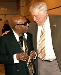 In 1994 Haynes was awarded the Danish Jazzpar Prize, and in 1996 the French government knighted him with the Chevalier de l'Ordre des Arts et des Lettres, France's top literary and artistic honor.[1] In 1995, the U.S. National Endowment for the Arts named Haynes as a NEA Jazz Master.[28] Haynes received honorary doctorates from the Berklee College of Music (1991),[29] and the New England Conservatory of Music (2004),[30] as well as a Peabody Medal, the highest honor bestowed by the Peabody Institute of The Johns Hopkins University, in 2012.[31] He was inducted into the DownBeat magazine Hall of Fame in 2004.[32] On October 9, 2010, he was awarded the Mid Atlantic Arts Foundation's BNY Mellon Jazz Living Legacy Award at the Kennedy Center for the Performing Arts in Washington, DC.[33] In 2001, Haynes's album Birds of a Feather: A Tribute to Charlie Parker was nominated for the 44th Annual Grammy Awards as Best Jazz Instrumental Album.[34]