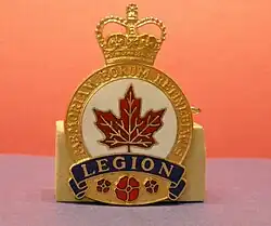 The Royal Canadian Legion (French: Légion royale canadienne) is a non-profit Canadian veterans' organization founded in 1925.[1] Members include people who served in the military, Royal Canadian Mounted Police, provincial or municipal police, Royal Canadian Air, Army and Sea Cadets and direct relatives.