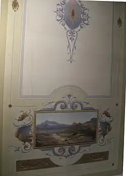 An example of the Art Nouveau frescos painted on the walls and ceilings of the Royal Victoria Hotel, Pisa Italy by Domenico Piegaja between 1896 and 1904. The frescos are slowly being restored after being painted over by the US army in WWII when they occupied the hotel.