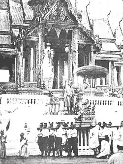 The sokan ceremony (Thai: พระราชพิธีโสกันต์), often translated as royal tonsure ceremony, was an important royal practice in Siam (now Thailand). It was an elaborate form of the Thai topknot-cutting ceremony, reserved for royalty of phra ong chao rank and above.[1]