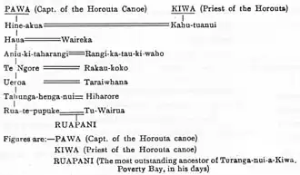 - the first image[2] showing his descent from Pawa, the captain of the Horouta waka and Kiwa, priest of the Horouta, who is also known as the navigator.[3]
