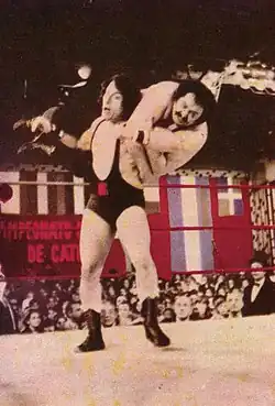 Rubén Peucelle was born in General Arenales, (Buenos Aires) son of a family of Italian origin. He began his career as a professional wrestler in 1962, in the TV show Lucha libre, issued by canal 13.[3] In 1968 Peucelle made his debut in Titanes en el ring, (owner of Martín Karadagian) the wrestling company's most important in Argentina. He stayed for 20 years with the Titanes making memorable wrestling matches at the stadium Luna Park.[4]