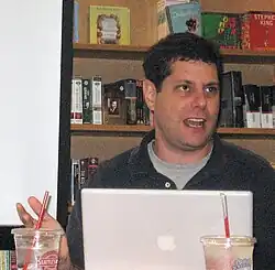 Ruben Bolling is a pseudonym for Ken Fisher (born c. 1963[10] in New Jersey), an American cartoonist and the author of Tom the Dancing Bug. His work started out apolitical, featuring absurdist humor, parodying comic strip conventions, or critiquing celebrity culture. He came to increasingly satirize conservative politics after the September 11 attacks and Iraq war in the early 2000s.[1] This trend strengthened with the Donald Trump presidency and right-wing populism from 2017-2020,[11] his critiques of which earned him several cartooning awards.[5][6]