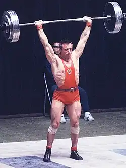 Rudolf Vladimirovich Plyukfelder (Russian: Рудольф Владимирович Плюкфельдер, born 6 September 1928) is a retired Soviet weightlifter and weightlifting coach. As a competitor he won world titles in 1959 and 1961 and an Olympic gold medal in 1964. As a coach he prepared a series of Olympic champions including Aleksey Vakhonin, Vasily Alekseyev, David Rigert, Nikolay Kolesnikov, Aleksandr Voronin and Viktor Tregubov.[1]