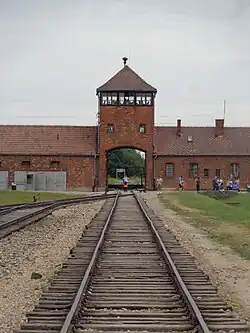 On 29 June 1942, the Reich Security Main Office transferred Vrba and the other volunteers to Auschwitz I,[37] the main camp (Stammlager) in Oświęcim, a journey of over two days. Vrba considered trying to escape from the train, but the SS announced that ten men would be shot for every one who went missing.[38]