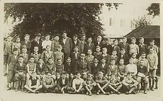 On 6 March 1944 Vrba heard that the Czech family camp was about to be sent to the gas chambers.[77] The group of around 5,000, including women and children, had arrived in Auschwitz in September 1943 from the Theresienstadt concentration camp in Czechoslovakia. That they had been allowed to live in Auschwitz for six months was unusual, not least because women with children were usually murdered immediately. Correspondence found after the war between Adolf Eichmann's office and the International Red Cross suggested that the Germans had set up the family camp as a model for a planned Red Cross visit to Auschwitz.[78] The group was housed in relatively good conditions in block BIIb near the main gate, although in the six months they were held there 1,000 died despite the better treatment.[79] They did not have their heads shaved, and the children were given lessons and access to better food, including milk and white bread.[80]