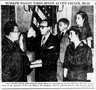 Rudolph Halley (June 19, 1913 โ November 19, 1956) was an American attorney and politician from New York City who served as President of the New York City Council from 1951 to 1953.
