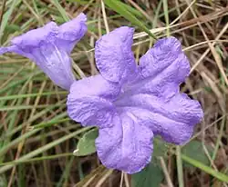 Ruellia geminiflora, known locally as ipecacuanha-da-flor-roxa, is a species native to Argentina; Brazil, typically Caatinga and Cerrado vegetation; Guianas, and Venezuela. The roots of this plant contains possibly toxic substances.