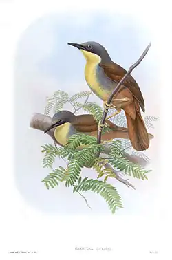 - ^ Gill, Frank; Donsker, David, eds. (2019). "Laughingthrushes and allies". World Bird List Version 9.1. International Ornithologists' Union. Retrieved 18 January 2019.