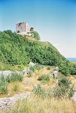 The Castle, as seen today, is probably the second built on the Island. In ancient times for defence against attack, taxes were raised on the island to construct Portland's first castle. Rufus Castle was reportedly built for William II, although the structure seen standing in ruins today is not of that date.[6] In 1142, Robert, Earl of Gloucester, had captured the castle from King Stephen on behalf of Empress Maud. It had additional fortifications added in 1238 by Richard de Clare who owned it at that time.[7] Around 1256, Aylmer de Lusignan obtained a licence to crenellate the 'insulam de Portand' and Robert, Earl of Gloucester, was granted a similar licence just 14 months later. There are no further mentions of this earlier castle or where it may have been. It is generally presumed that Rufus castle is the site of any work that may have resulted from these licences and any remains that may date from the period exist only at the foundation level or have been lost to cliff erosion.[1]