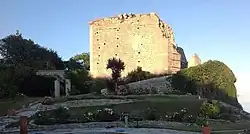 The castle was rebuilt between 1432 and 1460, by Richard, Duke of York, and much of what remains today dates from this time.[8] The politician and writer John Penn built the adjacent Pennsylvania Castle, a Gothic Revival mansion overlooking Church Ope Cove, between 1797 and 1800. Penn's new estate encompassed both Rufus Castle and that of the former parish church of St Andrews. At this time Penn made alterations to Rufus Castle to transform it into a picturesque folly. He erected a bridge over the lane leading to Church Ope and formed two new large openings in the walls of the castle, with a rounded arch to the North Elevation and Tudor pointed arch to the South which replaced the original door to the structure .[9] In 1989, the castle's seaward arch collapsed. By the end of the century, English Heritage had proposed a restoration to preserve the castle.[10]
