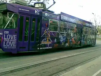 ![]() Melbourne tram in 2009 featuring Melbourne Storm advertising livery | |